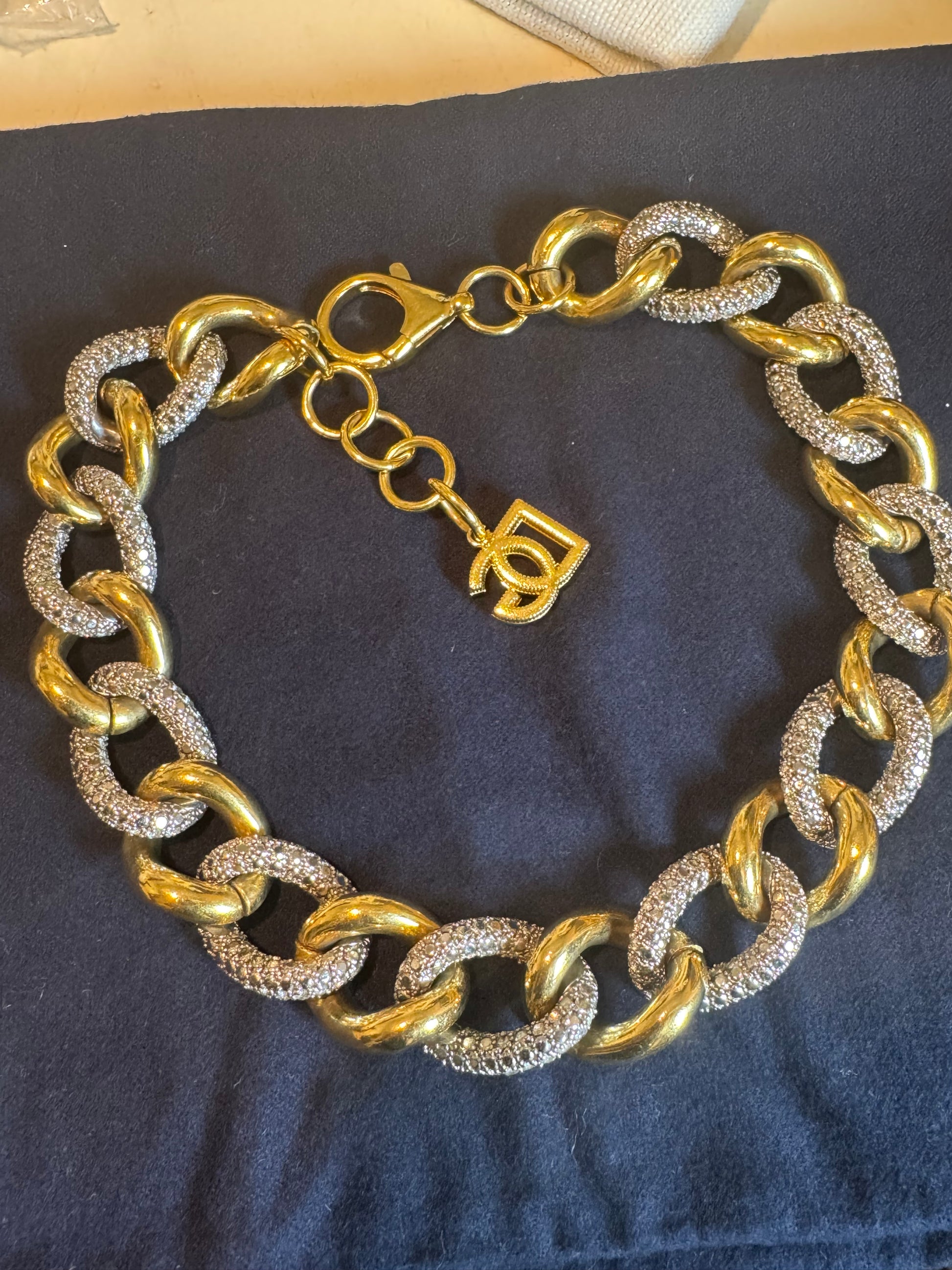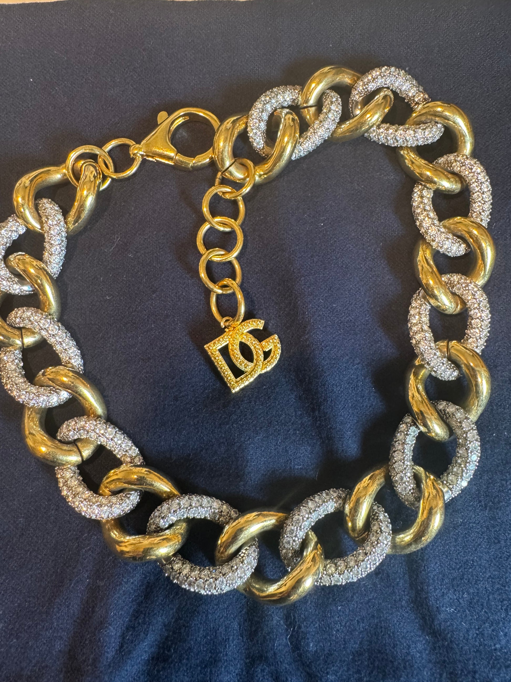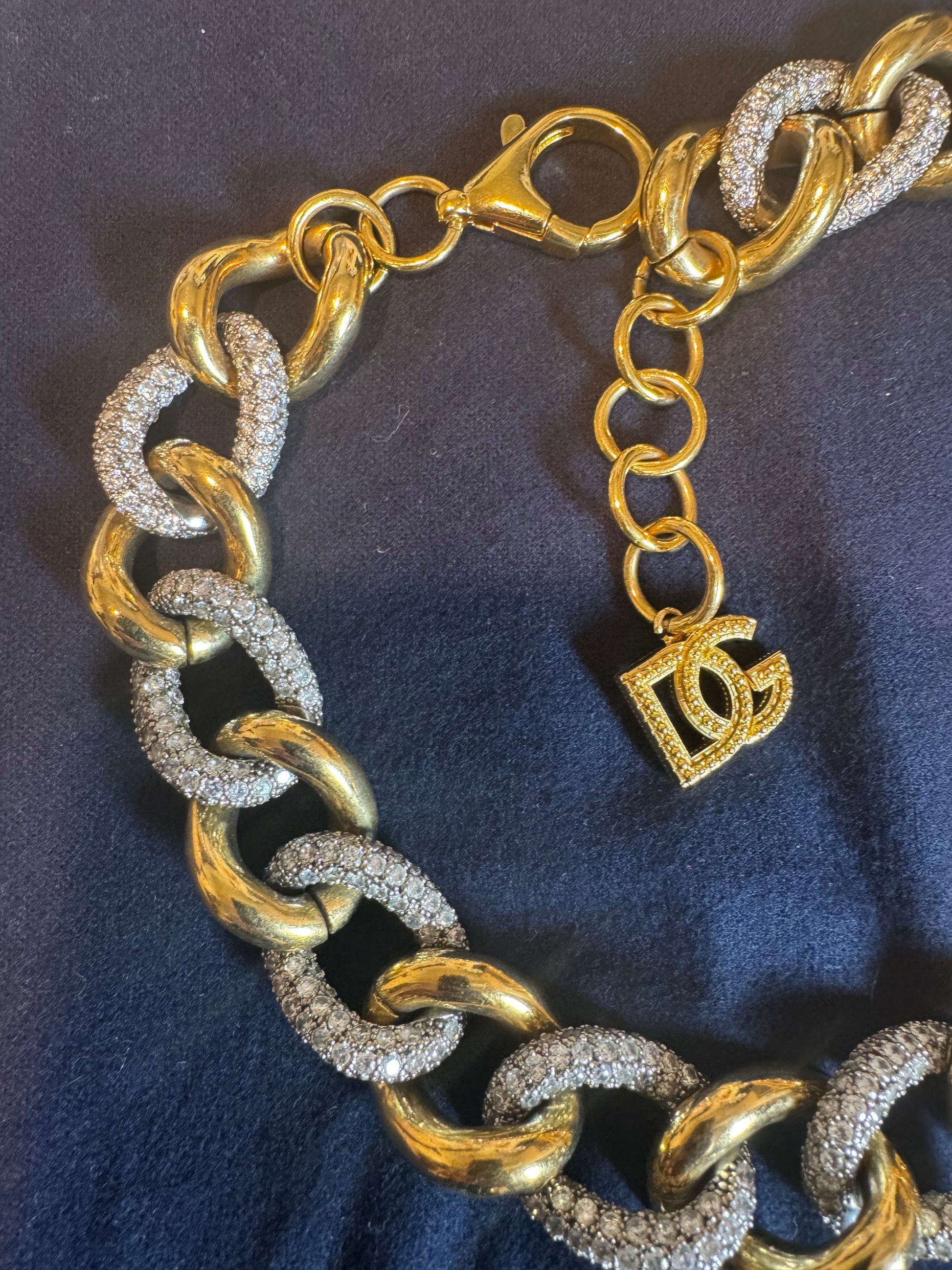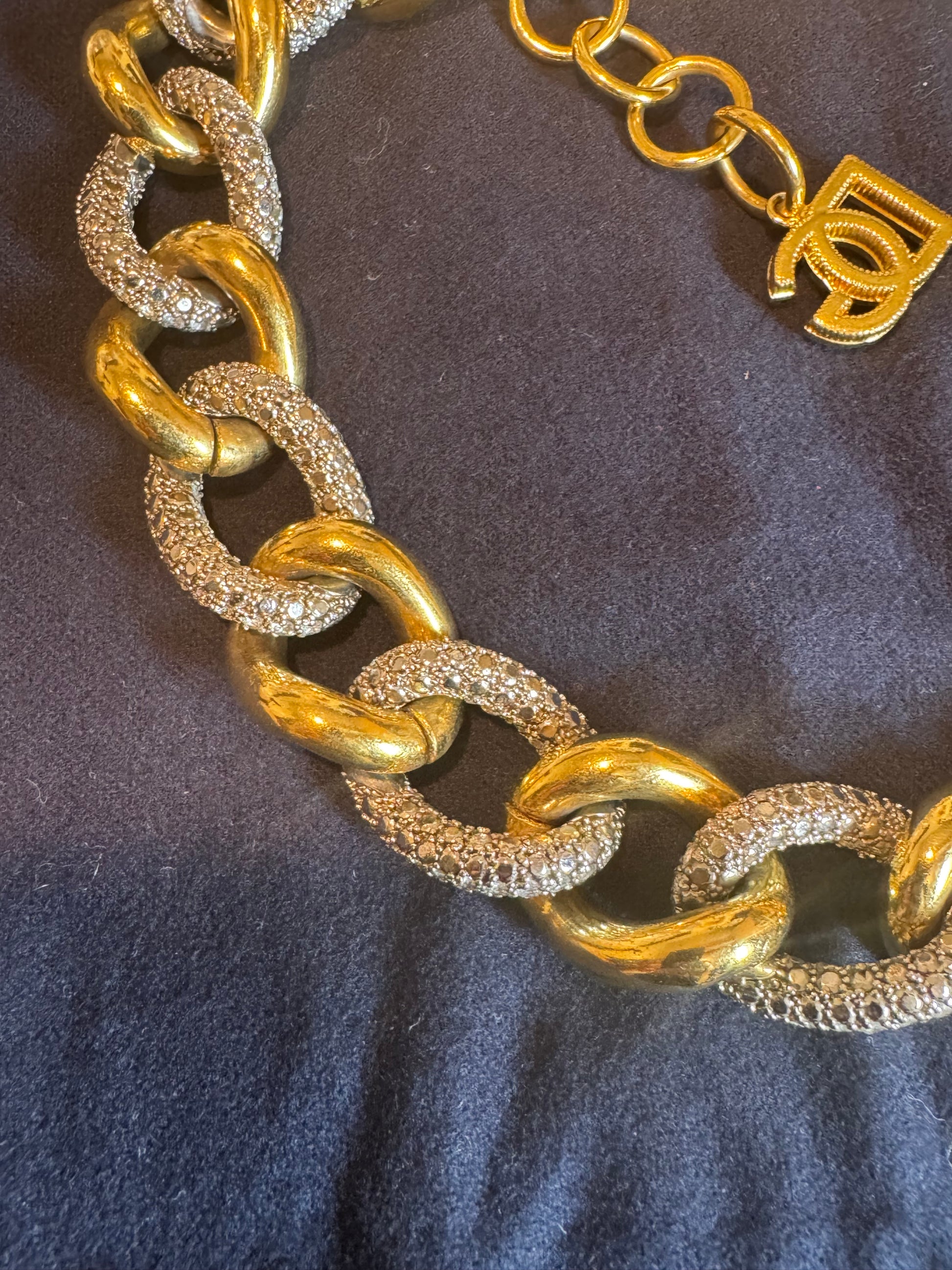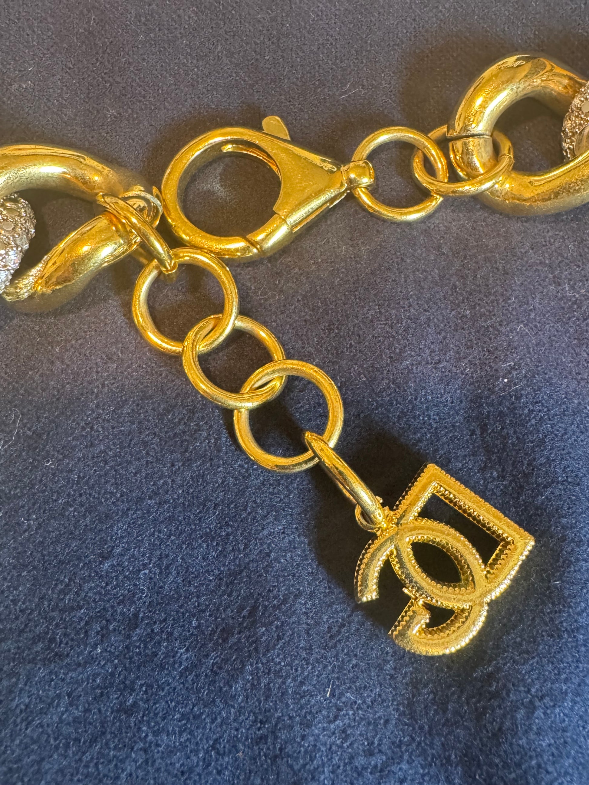 Beautiful shower from Dolce Gabanna , in a gold plated brass with crystal rhinestone , add a little shine to your outfit , the clasp is attached to a GG logo !