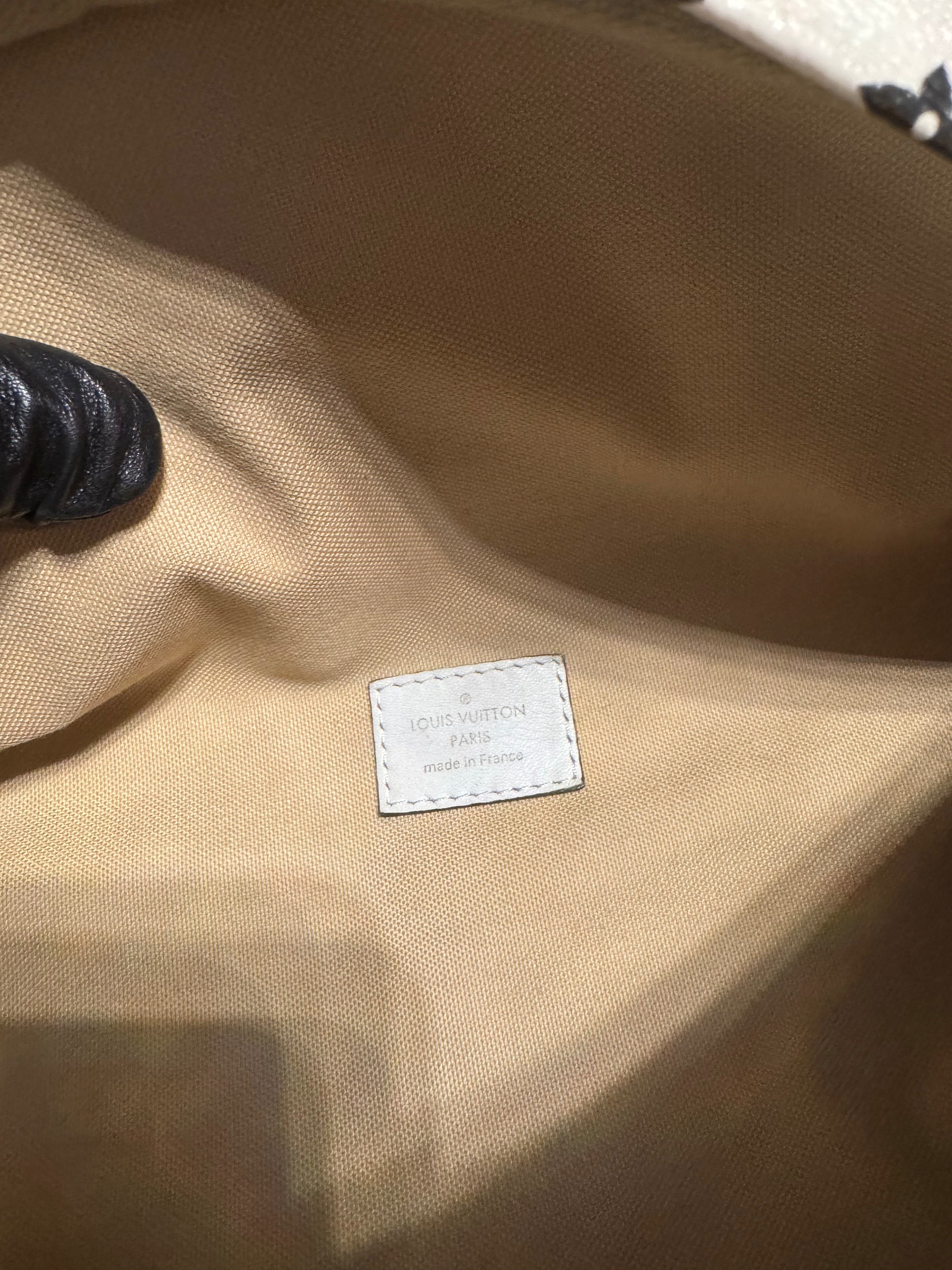 Elegant and versatile pre-loved Louis Vuitton bumbag featuring the signature Giant Monogram print in khaki and white. Crafted with premium materials and showcasing the iconic LV logo, this bag remains in very good condition. A sophisticated and functional accessory that pairs with both casual and upscale outfits.