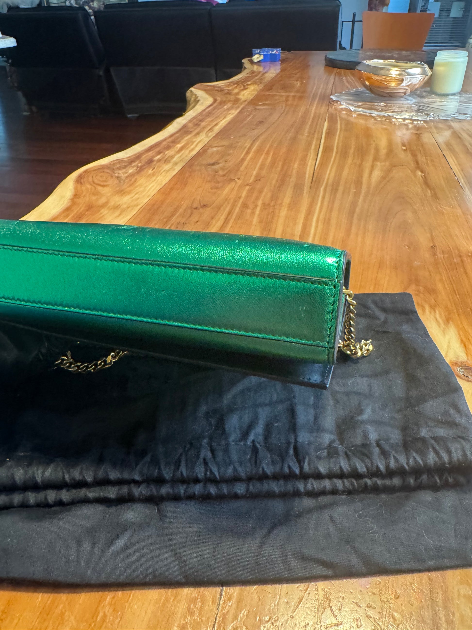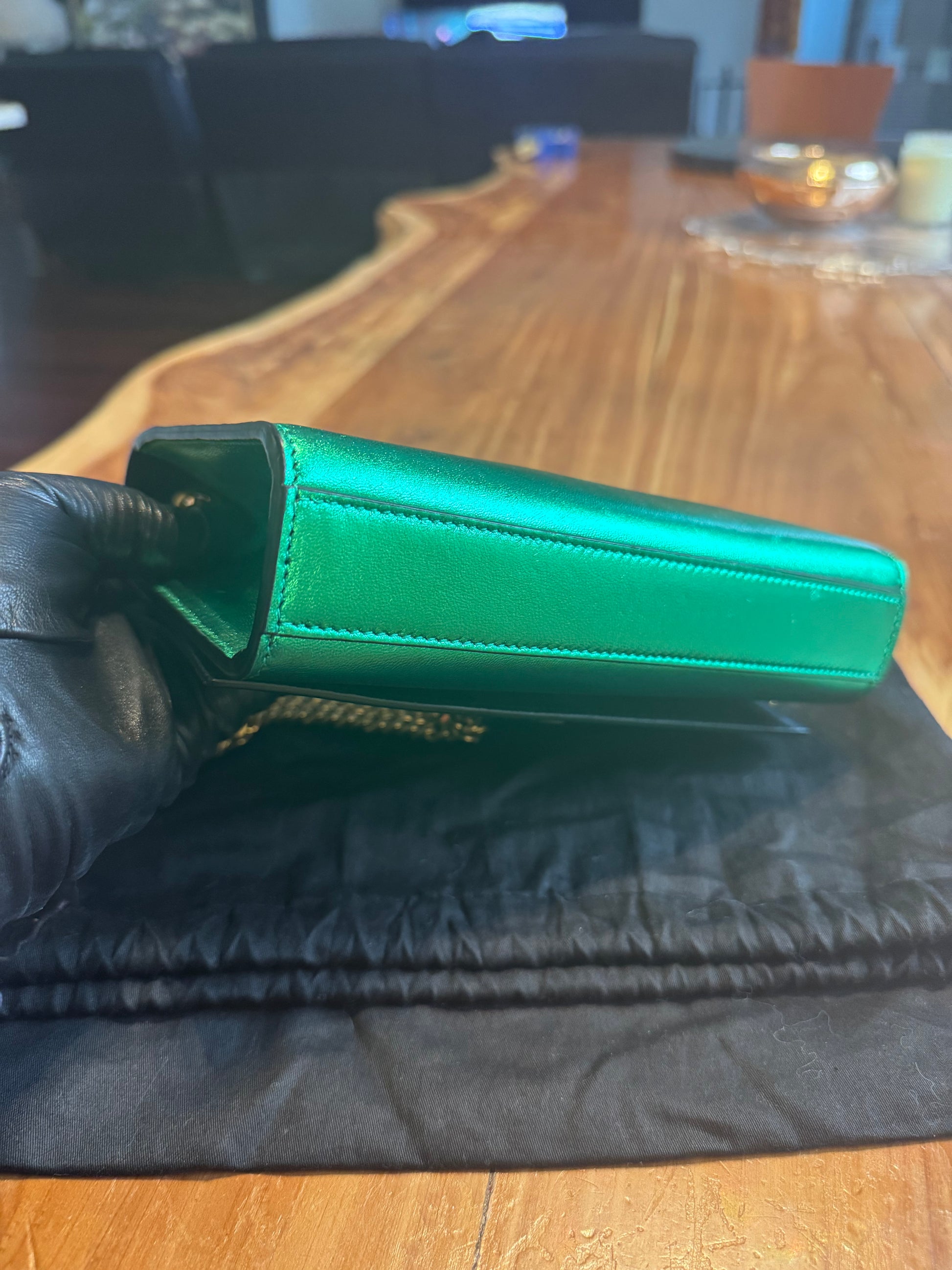 Saint Laurent Kate Chain Wallet – Metallic Emerald Green